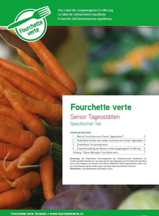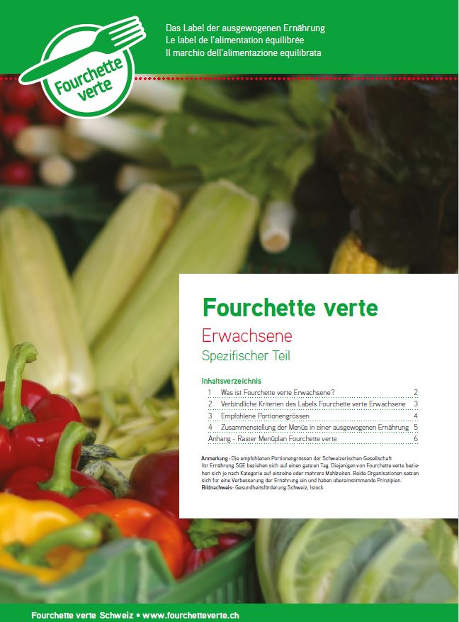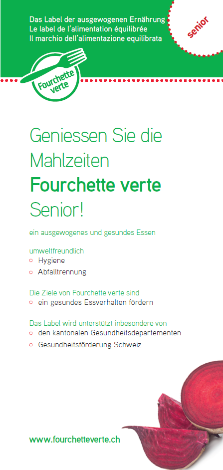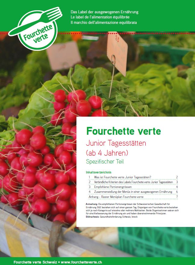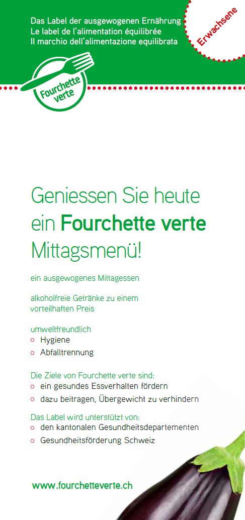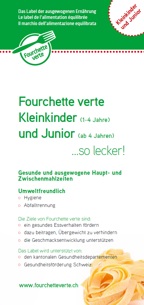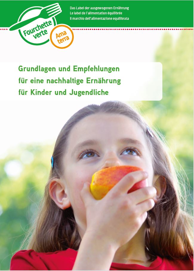 Hier finden Sie auch die Broschüren Fourchette verte - Ama terra für Erwachsene und Kinder, in denen Sie viele Informationen für ein nachhaltiges Nahrungsangebot entdecken können.